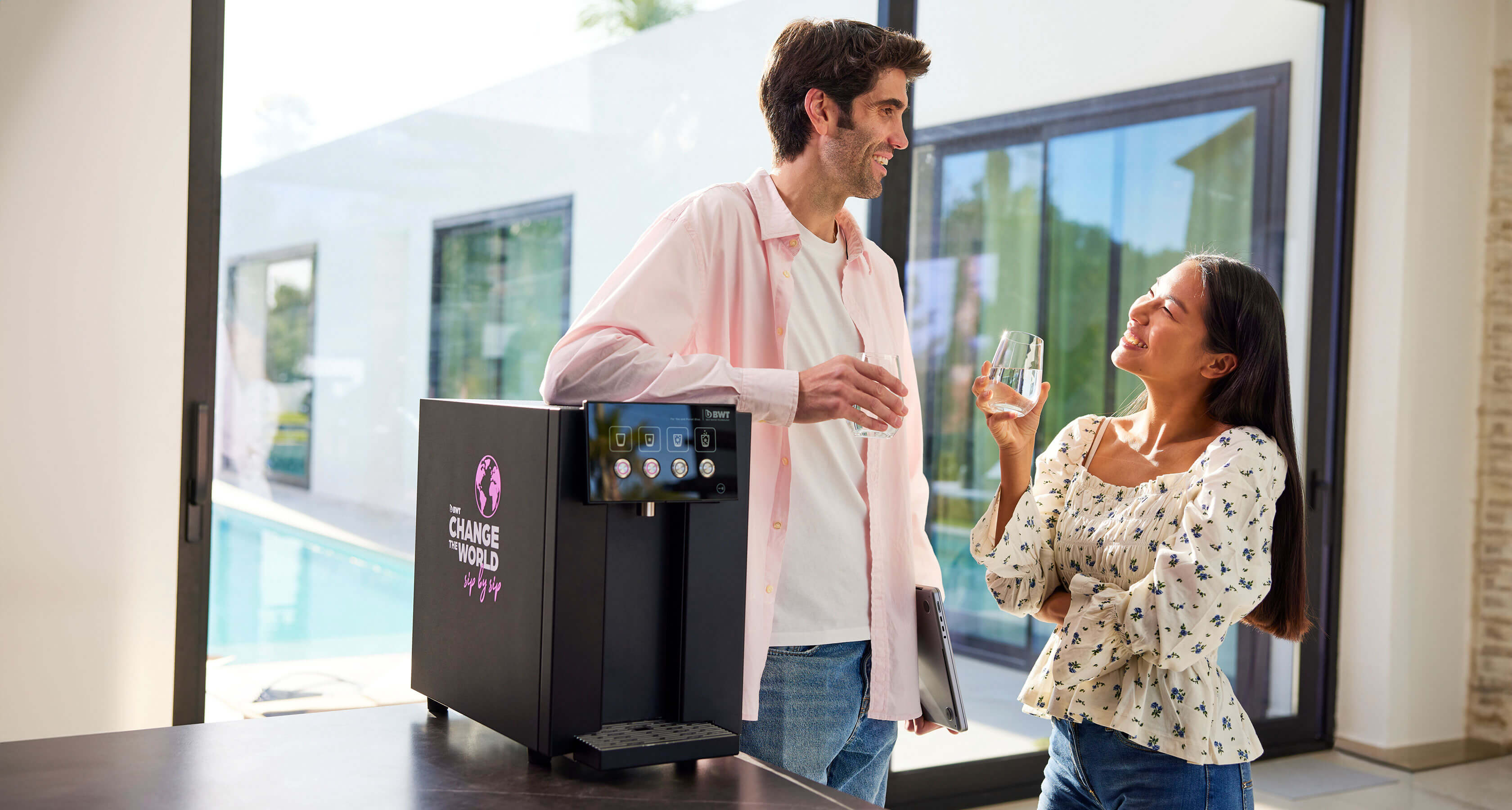 Every single person can contribute to making our planet bluer and less plastic. It's not only a choice but our duty to society, animals, and our children. At BWT, we do this with our globally patented technologies that mineralize local water, so that communities, households, companies, and people can enjoy local water of the best quality directly out of the tap, the table water filter or the water dispenser. BWT products enrich water - with valuable minerals and trace elements such as magnesium, zinc or silicate. This helps us to CHANGE THE WORLD - and helps you to have great tasting, chilled, sparkling or still, local mineralized water at your disposal. Without the need to buy single-use plastic- or glass bottles, producing CO₂ emissions and plastic waste.